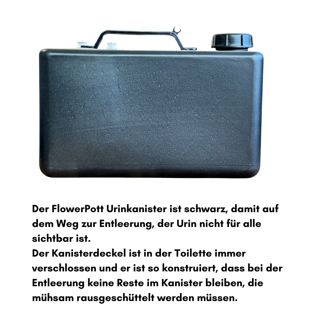 Der Flower Pott ist die einzige Kompost-Trenntoilette mit Überlaufschutz, integriertem Aktivkohlefilter, geschlossenem Urinsystem, elektrischer Kurbel und LED-Füllstandsanzeige für den 9-Liter-Urinkanister. Schlicht im Design, genial in der Funktion.